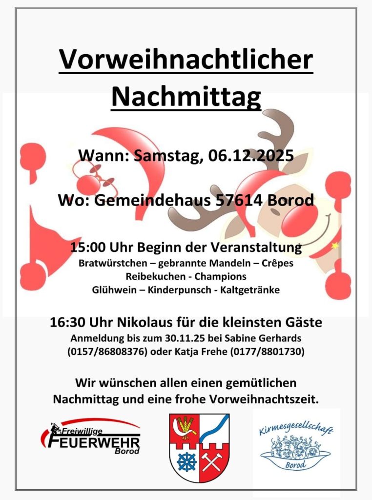 Die Weihnachtsfeier findet unter dem Motto „Schlagernacht“ statt. Beginn ist 19:00 Uhr. Wer teilnehmen möchte, meldet sich bitte bis zum 07.12.25 bei Angelina Frehe oder Nils Müller an. Ein Unkostenbeitrag wird nicht erhoben, da wir den Mitgliedern für die geleistete Arbeit in diesem Jahr gerne was zurückgeben möchten. Getränke und Fleisch werden vor Ort sein. Wer Lust hat, kann gerne einen Salat oder Dipp mitbringen. Bitte das bei der Anmeldung mit angeben.
